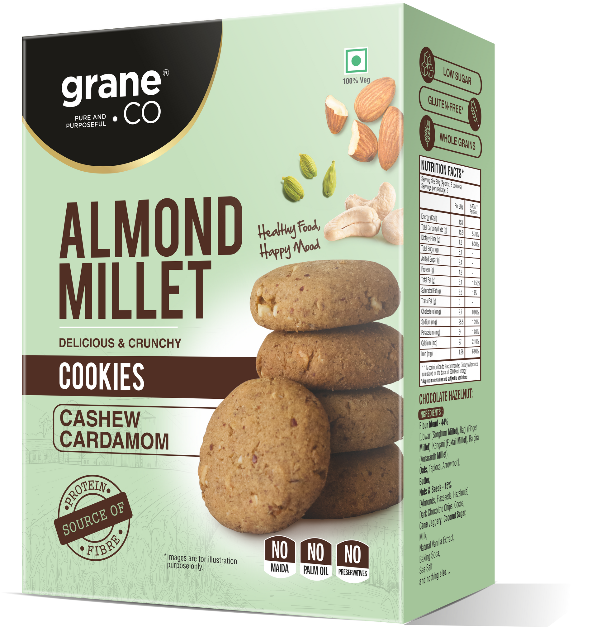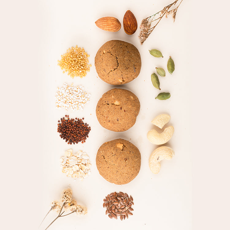 Millet Flour blend - 42% [Jowar (Sorghum Millet), Ragi (Finger Millet), Kangani (Foxtail Millet), Rajgira (Amaranth Millet), Oats, Tapioca, Arrowroot], Butter, Milk,